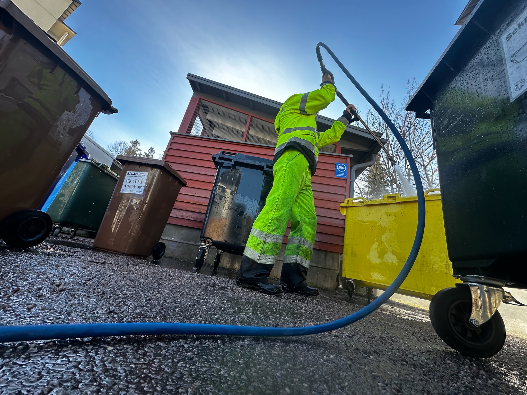 Ammattilainen puhdistaa roska-astiat tehokkaasti ja turvallisesti: